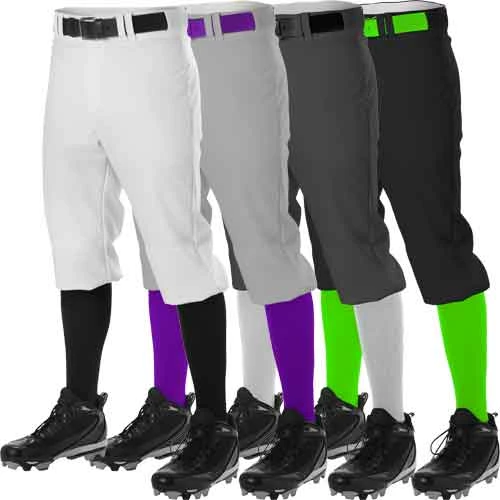 - Medium weight (12 oz. per sq. yd.) Double-Knit Polyester. Knicker Length pant ending just below knees (for most average size players). Progressive inseam length ‐ inseam is slightly longer for larger pants.