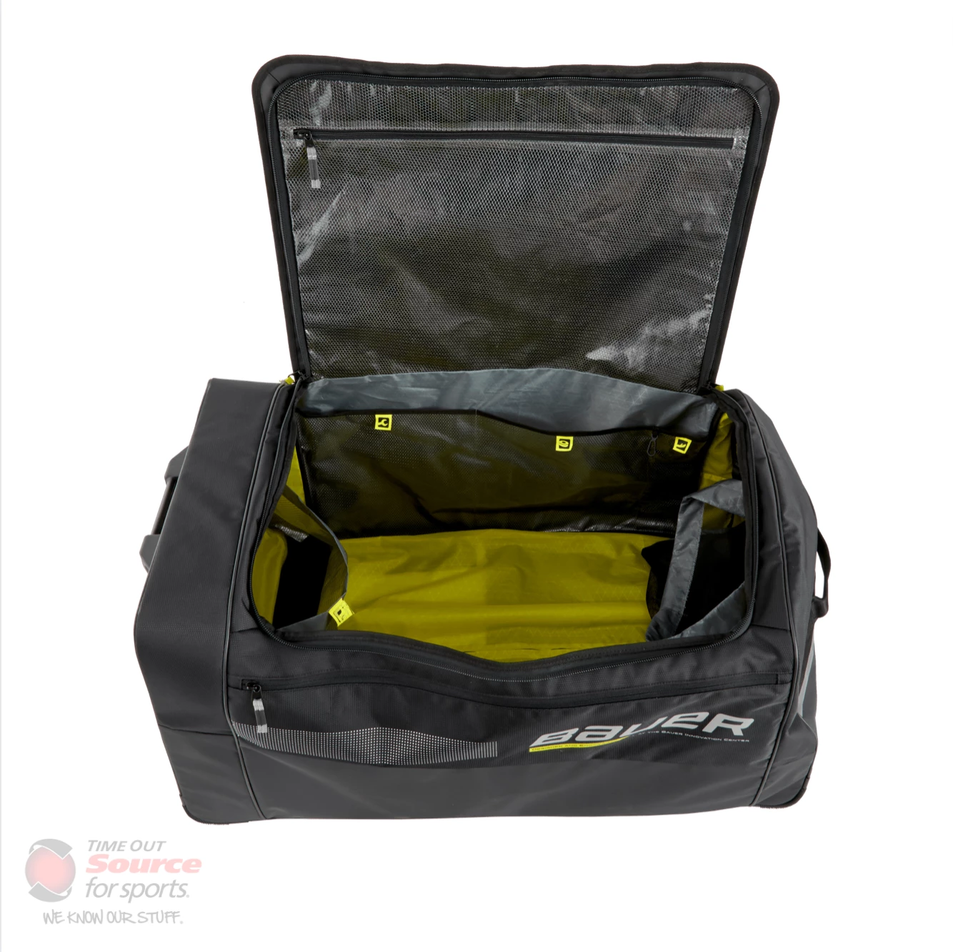 Compartments: Oversized U-shaped opening main compartment with internal accessory, skate, and baselayer storage options; side zippered accessory pocket; steel sleeve included