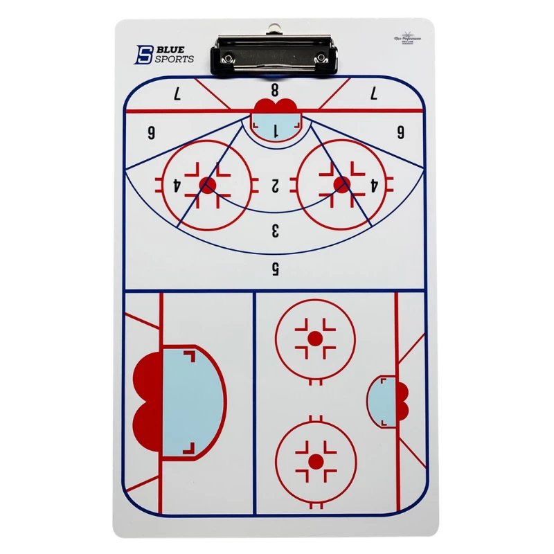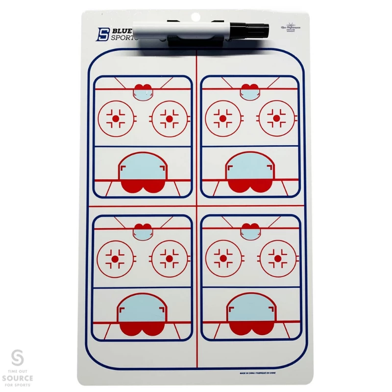 The Blue Sports Hockey Goalie Coach Board is an elite-level coaching board designed specifically for hockey goalie coaches and goalies. Featuring a half ice sheet on one half with double creases on the other end and four mini ice sheets on the reverse side, it’s the ideal board to learn angles and positioning between the pipes. This top of the line board includes a deluxe clipboard, dry erase marker.