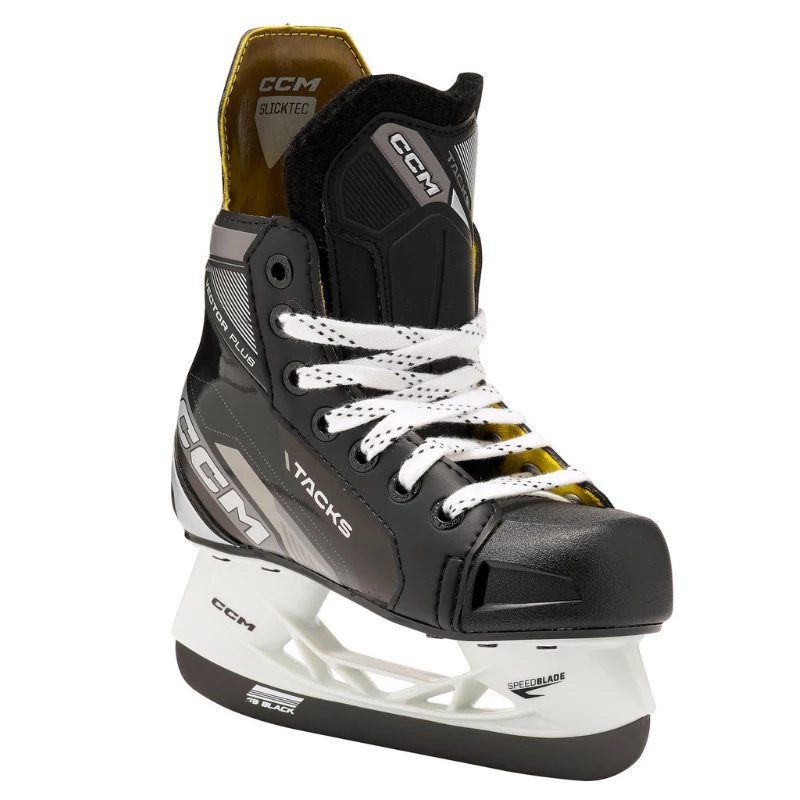 Upgraded value – With top and bottom brass eyelets and XS1 black steel, the CCM Tacks Vector Plus adds value and performance.