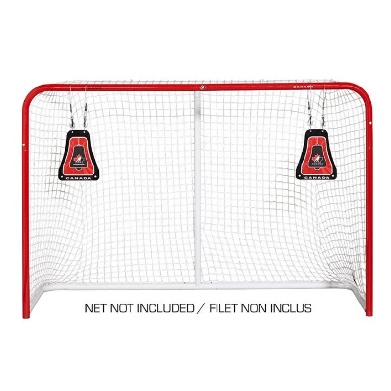 The Hockey Canada Metal Bell Shooting target is the perfect hockey shooting aid to help you improve the power and accuracy of your shot. With a quick and easy set-up, the metal targets include 2 metals wires with S-hooks that are compatible with any hockey net.