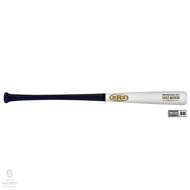 Made from our finest hand selected Maple billets, superior in bending abilities, resistant to twist and lower splitting properties. A closed grain wood coming from only our best suppliers that does not flake, thus providing higher durability. Every billet is sorted and graded on structural elements then accurately weighed to ensure excellent model consistency, especially on large barrel models. The Eagle Magnum is strengthened with fiberglass biaxial sleeving applied with our special blend of Rock Resin epoxy which was designed by the President of KR3 with over 45 years of experience in making baseball bats and launched in 2013. It was designed to provide excellent quality at this price point. All Eagle Magnums come with a 60 Day warranty against manufacturer’s defect. In house lab testing continually monitors models for exceptional performance and durability. Handcrafted Canadian Quality in each and every bat.