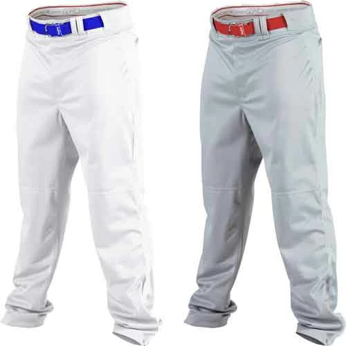 - Semi-relaxed fit. 2″ wide waistband with pro tunnel belt loops (belt not included) with gripper strips help keep the jersey tucked in. Two‐button snap closure with genuine YKK brass zipper fly & no drawcord. Two, inset back pockets with tie down that keeps pockets tucked in. Reinforced, double knee fabric construction. Small embroidered Rawlings “R” logo on the left back pocket. Double knee layer stitch reinforcement.