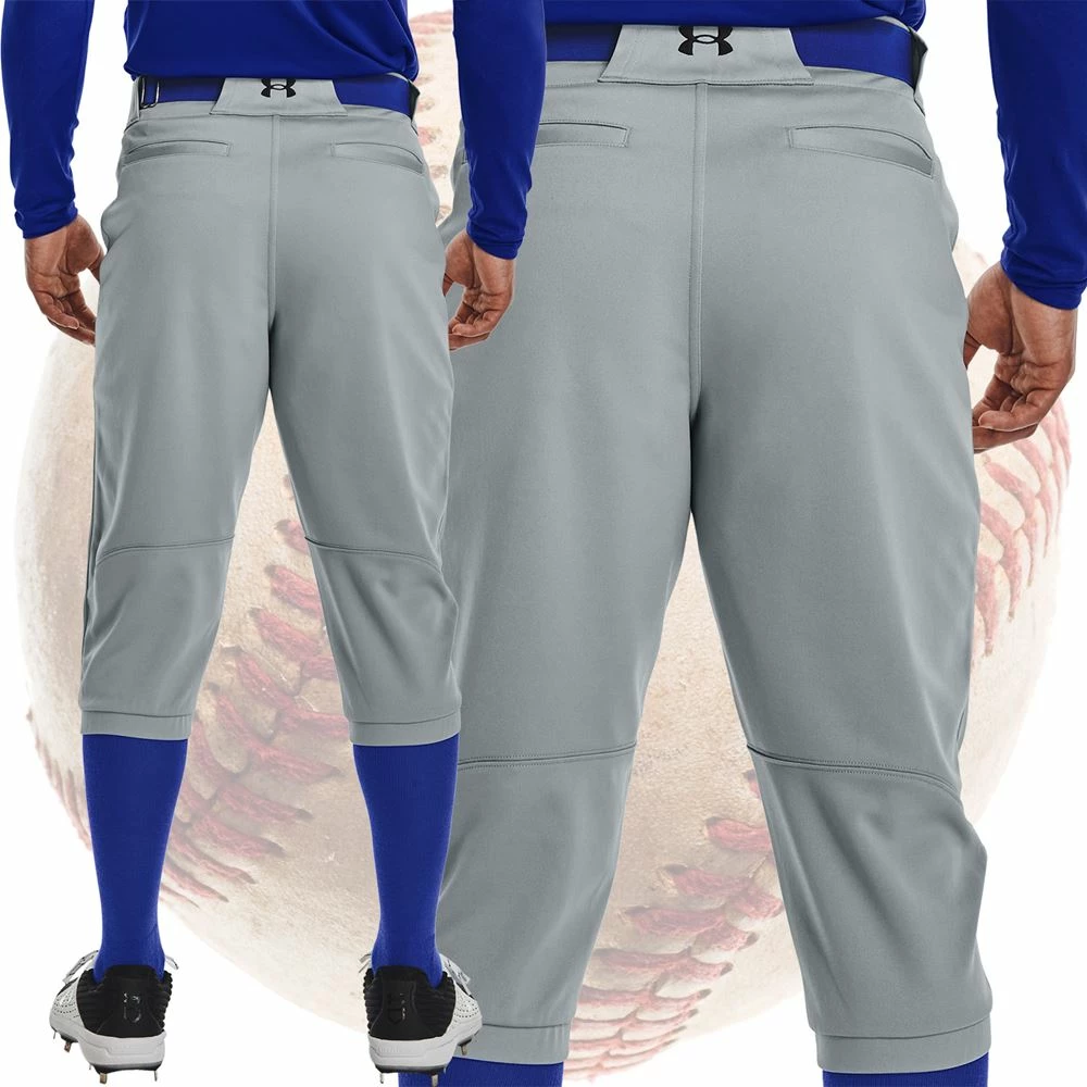 - Multi panel construction provides natural, ergonomic performance during movement. Stretch Engineered waistband contains a Silicon baseball themed lining that helps keep the jersey tucked in along with pro tunnel belt loops (belt not included). Color matching, two‐button snap closure with zipper fly. Two, inset back pockets. Small, embroidered Under Armour “UA” logo at the upper left leg and back center belt loop.