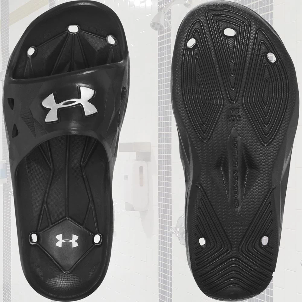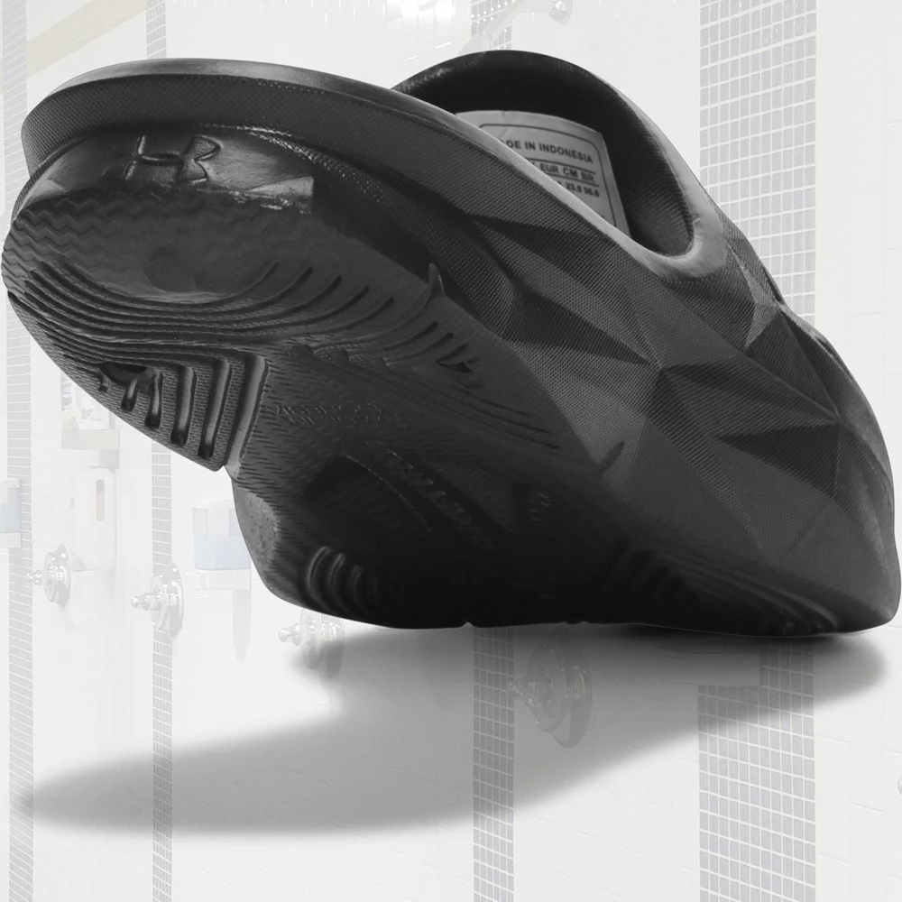 Outsole: Grooved pattern traction for grip on wet surfaces. Strategically emplaced divots are engineered to transport water away from the foot.