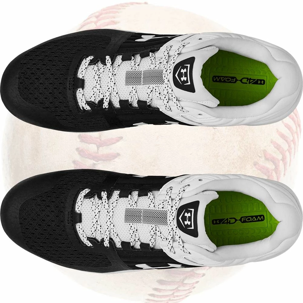 Sole Unit: Molded sockliner provides more comfort & better internal traction inside the shoe. Updated midfoot construction for ultimate lock‐down fit. Charged Cushioning ® midsole converts impact into explosive speed & power on the base paths. Under Armour Microtips technology provides comfort, more traction & reduced weight. TPU shape cleat bottom is sharper & engineered for increased traction & quicker release. Permitted for use in most national baseball organizations.